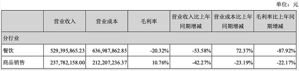 报告期内,全聚德餐饮、商品销售、租赁三大业务分别实现营收约5.30亿元、2.38亿元、0.16亿元,占2020年营收比重分别为67.58%、30.36%、2.06%。唱主角的餐饮板块营收同比减少超五成。