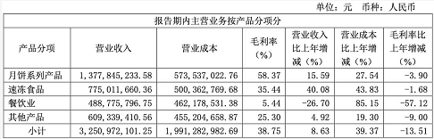 疫情下餐饮业整体萧条,广州酒家餐饮板块也不可避免遭受冲击,去年营收同比下降26.70%至4.89亿元,毛利率为5.44%。不过,广州酒家食品制造业的毛利率高达45.35%,其中拳头产品月饼是赚钱利器,毛利率达58.37%,营收同比增15.59%;速冻食品紧跟其后,毛利率为35.44%,营收同比增四成。