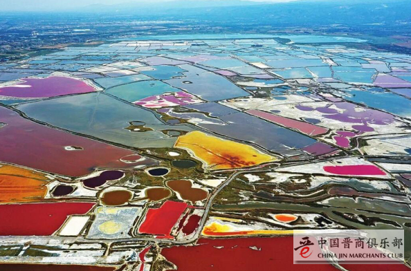运城盐湖诞生于新生代第四纪初,距今约有5000多年历史,面积132平方公里,是世界三大硫酸钠型内陆盐湖之一。早在上古时期,先民们就在运城盐湖通过古老的方法结晶制盐。近年来,因运城盐湖湖水中富含多种微生物及大量杜氏盐藻,在夏季高温蒸发下,湖水浓度上升,通过阳光折射,湖面映衬出七彩颜色,高空俯瞰,五彩斑斓、颜色各异,犹如“大地调色盘”,蔚为壮观,七彩盐湖,也因此斑斓景观闻名于世。然而,“七彩”美景只能从高空欣赏,近处则无法领略这样的壮美。