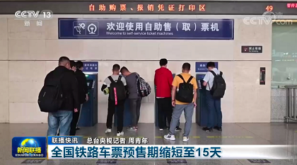 车站窗口、代售点和自动售票机售票时间由过去的28天,缩短为15天。