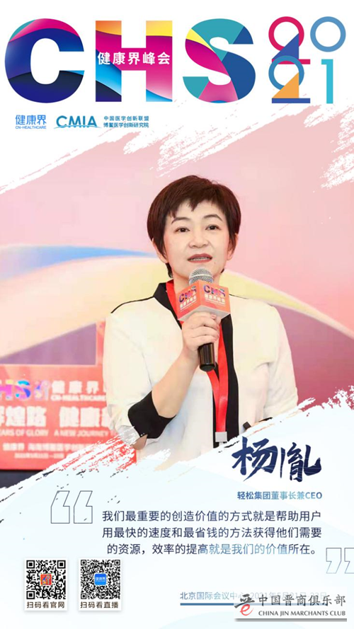 2021年5月21日,在以“百年辉煌路,健康新征程”为主题的健康界峰会暨北京协和医院建院百年纪念学术活动中,轻松集团创始人、董事长兼CEO杨胤受邀出席本次峰会,并在以“新财富,新领军”为主题的中国健康财富大会发表了《升维突破, 打造3000万家庭值得信赖的健康保障平台》的演讲,就轻松集团的发展路径做出分享,也为国内健康保障事业的发展提供了重要的参考。