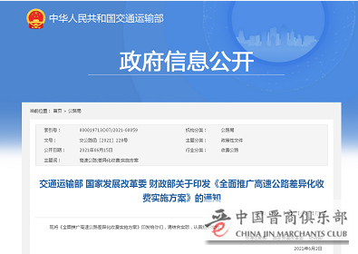 近日,交通运输部、国家发展改革委、财政部三部门发布关于印发《全面推广高速公路差异化收费实施方案》的通知。通知强调,全面推广高速公路差异化收费,持续提升高速公路网通行效率,降低高速公路出行成本,促进物流业降本增效,让社会公众更多分享高速公路改革发展的红利。