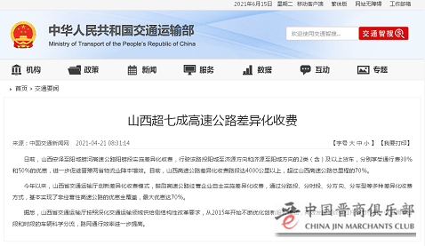 今年以来,山西省交通运输厅创新差异化收费模式,鼓励高速公路经营企业自主实施差异化收费,通过分路段、分时段、分方向、分车型等多种差异化收费方式,基本实现了非经营性高速公路的优惠全覆盖,最大优惠达70%。