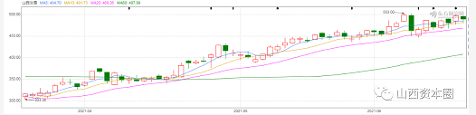 2020年是国内白酒股百花齐放的一年。这一年山西汾酒股价也实现了历史性的飞跃。去年年初至今,山西汾酒股价涨幅已逾578%。近期股价一度突破500元大关,总市值创历史新高,最高达到4382.79亿元,成为股价仅次于贵州茅台的“酒王股”。
