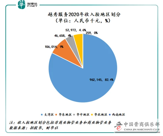 据招股书显示,非商业物业在管面积方面,越秀服务2018年至2020年复合年增长率为30.8%;商业物业在管面积方面,越秀服务2018年至2020年复合年增长率为9.8%。收入按地区划分,2020年越秀服务产生自大湾区的收入占营收总额约82.4%。在管面积方面,截至2020年12月31日,越秀服务在管项目有215个,在管面积超3,265万平方米。其中,在大湾区的在管面积为2,530万平方米,约占总在管面积的77.4%。