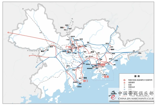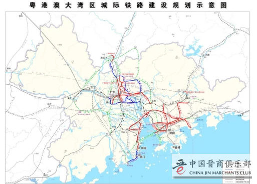 图:粤港澳大湾区城际铁路建设规划示意图 图源:《粤港澳大湾区(城际)铁路建设规划》