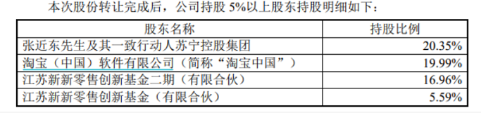 据了解,本次股份转让完成后,苏宁易购将处于无控股股东、无实际控制人状态。公告显示,新引入的股东新新零售基金二期,出资人结构多元、优势互补,各方将积极推动苏宁易购进一步完善治理结构,提升上市公司科学决策能力,全面提升经营管理水平,建立更为科学的激励体系,助推向“零售服务商”转型的落地,提高上市公司资产和业务运营效率,推动公司长期战略的实施。