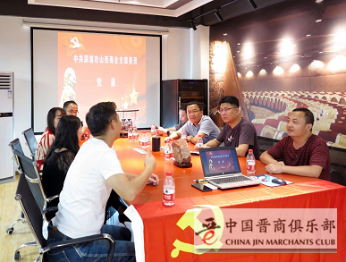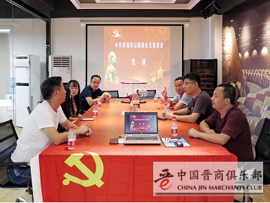 8月21日下午,深圳市山西商会(中国晋商俱乐部联合发起机构)党支部主题党日活动在监事单位深圳跨境同盟控股有限公司和副会长单位深圳志诚酒业有限公司举行,党员和积极分子10余人参加。