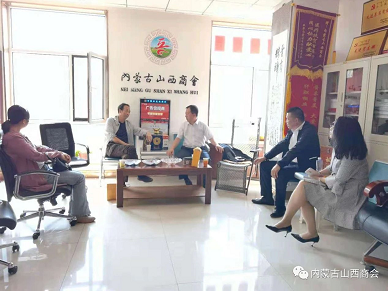2021年8月31日日上午,商会常务副会长龚占轶接待了前来拜访的会员企业东方证券总经理赵斌会、经理元宝,陕西蒙驴生物科技公司经理郭栩橙,内蒙古将军笑酒业有限公司经理李春梅,内蒙古利民科技有限公司业务经理尹旭东。