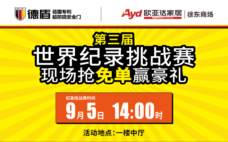 摘要:2021年9月5日武汉徐东欧亚达一号店,安全门界性能天花板——德盾超防撬安全门将再次向福布斯世界纪录发起挑战。
