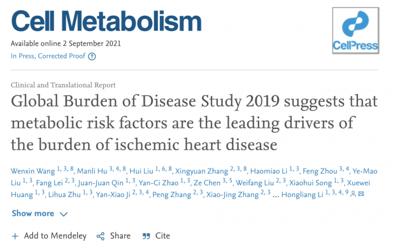 武汉大学教授李红良团队通过分析全球疾病负担数据发现,在过去经济飞速发展的30年间,高血压、高低密度胆固醇、高血糖及高体重指数已经成为导致缺血性心脏死亡的关键因素。相关研究9月2日在线发表于《细胞—代谢》。