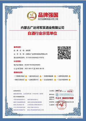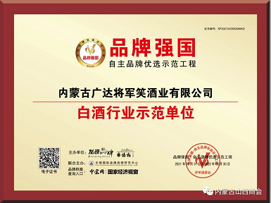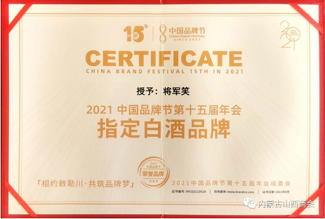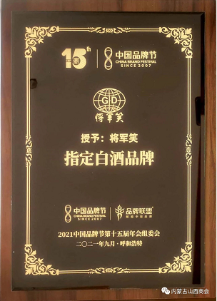 2021年9月11日,由中共呼和浩特市委、市政府与品牌联盟(北京)咨询股份公司共同主办,燕谷坊集团、华软资本集团协办的2021中国品牌节第十五届年会,在呼和浩特香格里拉大酒店大宴会厅隆重开幕。商会常务副会长、党支部书记——内蒙古广达将军笑酒业有限公司董事长李守效应邀参加了开幕式,公司的“将军笑品牌酒”被选为大会指定白酒品牌。