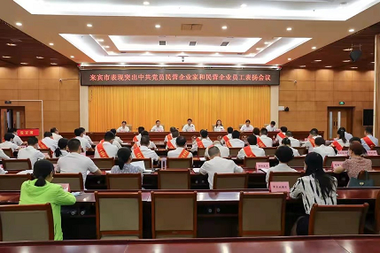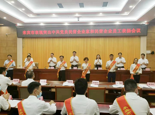 来宾市表现突出中共党员民营企业家和民营企业员工表扬会议现场