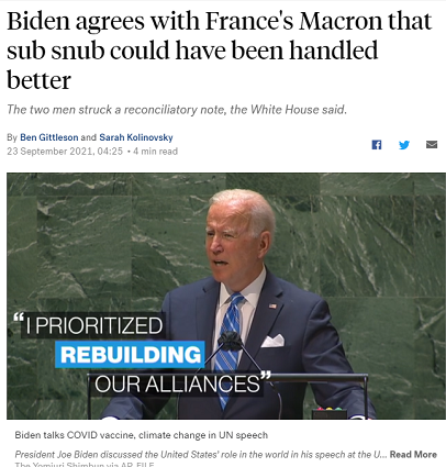 ABC News报道:拜登同意马克龙的看法,认为核潜艇事件原可以处理得更好