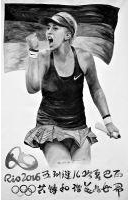 徐晓青的创作以奥运健儿为主,中国的羽毛球选手林丹、俄罗斯网球选手莎拉波娃等都是她画笔下的人物。这些作品都是画在大幅的油布上,作品色彩鲜艳,人物栩栩如生,具有很强的视觉冲击。“人物以每个国家最出名的体育及运动员为主,不局限于中国健儿。奥运是全球的赛事,带着这些油画走出中国,走向世界,这也是我的愿望。”