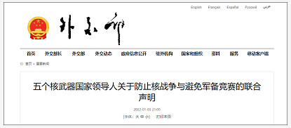 外交部网站1月3日消息,五个核武器国家领导人发布关于防止核战争与避免军备竞赛的联合声明,全文如下: