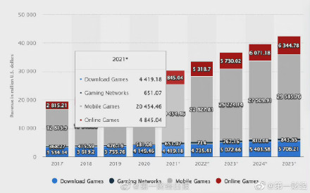 根据Statista数据显示,预计2021 年204.54亿美元,玩家数为1.56亿人,人均支出为137美元,是中国移动游戏用户的2倍以上。