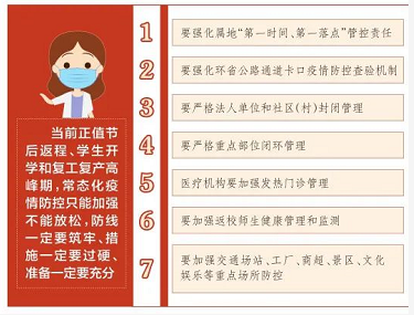 当前正值节后返程、学生开学和复工复产高峰期,常态化疫情防控只能加强不能放松,防线一定要筑牢、措施一定要过硬、准备一定要充分。
