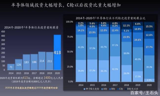 首先是资本的涌入,公开信息显示,2019年我国半导体领域的投资只有300亿元,但2020年飙升到了1400亿元,短短一年时间,投资金额就翻了4倍多。