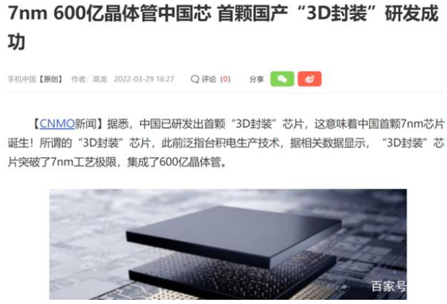 因为可以叠放更多的芯片,3D封装的芯片在处理信息数据的时候就会将效率大幅度提升,而现在媒体报道指出,中国已经研发出首颗3D封装芯片,意味着国产首颗7nm芯片已经诞生了。