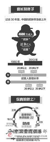 目前,加上未成年人,中国的肥胖人群已突破1亿,肥胖率已突破10%,其中城市成年人体重超重者已经突破40%。