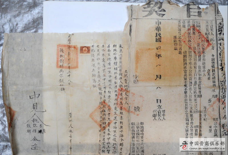 图为民国四年的一份地契,上面还贴着一张完好的交易印花税票。