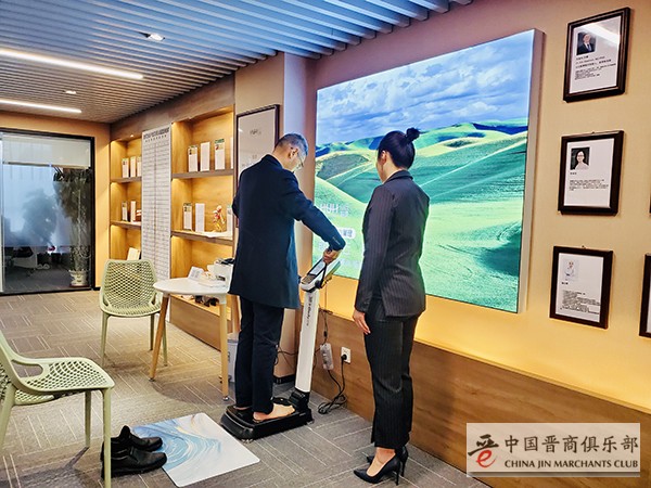 在座嘉宾体验BMI体测,并由上海山丘联康健康管理有限公司-山西运营管理中心的健康管理讲师为大家做报告的分析。