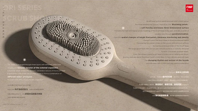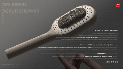 ORI系列搓淋按摩花洒具备CMF设计所要求的创新性、美观性、功能性、落地性、环保性与情感性六大维度,在色彩上以整体中性自然色系,丰富视觉层次;在材料上,创新运用植物纤维环保注塑材料,如椰子壳纤维、黄麻纤维、稻壳、活木等,还原天然纤维的自然色泽、气味与触感;在工艺上,精心设计的手柄长度、角度,刷头采用可替换拆卸结构、可选择不同软硬刷头以及多种水形切换,都带来升级的搓澡享受,赋予消费者重回自然的亲切与欢愉。