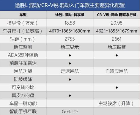 面向城市通勤派,北京现代很有诚意地把途胜L 混动起售价定在20万以内,比丰田荣放双擎便宜整整四万块,相比动力规格接近的本田CR-V“锐•混动”系列门槛价格也低了2.4万元;价格更低同时分量更足,对比CR-V“锐•混动”入门版,途胜L 混动动力参数略胜,车身尺寸更优,配置层面也做到了占据主动,比如胎压显示会比胎压报警好用,配备前后驻车雷达/倒车盲区影像,以及标配真皮方向盘+换挡拨片等...