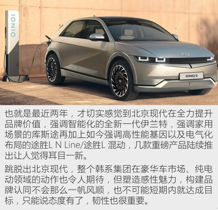 需要交予时间的还有品牌价值建设,这更不是一朝一夕能完成的工作,途胜L N Line+途胜L 混动为北京现代开了个头,不论电气化领域还是高性能布局仍要加强宣传,并引入最少两款相关拳头产品。