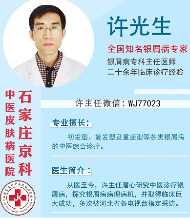 以上已经详细介绍,相信大家已经有了详细的了解。为了避免受到牛皮癣的困扰,患者一定要多加注意,正确进行牛皮癣的治疗,更多预防护理类知识请加许主任微信wj77023,了解更多。