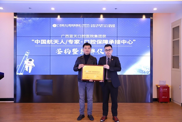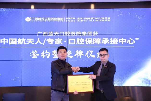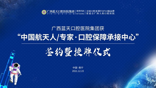 2021年12月15日,中国航天事业战略合作伙伴正雅齿科科技(上海)有限公司授予广西蓝天口腔医院集团“中国航天人中国航天专家·口腔保障承接中心”,达成战略合作。