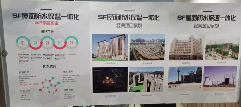 当下,建材市场竞争颇为激烈,SF克帮防水系列产品之所以会成为众人瞩目的对象源于它在屋面找坡、保温、防水、隔热中所起到的强大作用。在屋面防水中,首先,产品品质过硬,混凝土板上面使用SF克帮产品找坡、保温、防水全部采用的是SF克帮防水溶液,层层防水,无空白层,防水等级可达I级,且寿命长,使得工程一次验收合格,并在京的屋面防水工程至今达到25年使用年限,至今没有返修,这成功开创了行业的先河。其次,工程造价低。SF克帮产品是高科技专利产品,它将传统的屋面砼板以上的七层做法优化为四层工艺,以此降低了施工成本。再次,技术先进。依托科技创新,将防水、保温、隔热三种功能为一体,不串水、不受气候影响。将湿作业问题,屋面砼板冷桥问题及女儿墙与砼板缝隙推胀问题统统解决掉。现北京克帮公司将SF防水材料应用在屋面混凝土中,可以从根本上解决屋面漏水问题,开创屋面防水新局面。
