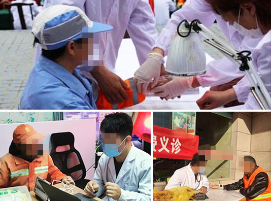 此次义诊活动通过现场测量血压、血糖、皮肤检查等项目,针对冬季来临,寒风凛冽,室内外温差大,工作强度大,饮食基本没有规律,环卫工人容易出现皮肤干裂、瘙痒、红肿,胃肠等问题,燕赵中医院义诊专家团队认真、专注看诊,并对工人个体情况给于指导,同时对部分老年人进行心脑血管方面的预防及保健,高血压、高血脂、高血糖的控制方法,并给于适合个人的健康指导与建议。
