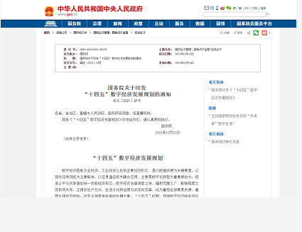 1月12日,国务院正式发布《“十四五”数字经济发展规划》。