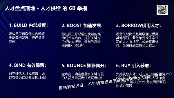 可以看到,6B举措代表了不同维度对于人才梯队搭建的贡献,更多是针对整个组织大方向的人才战略。