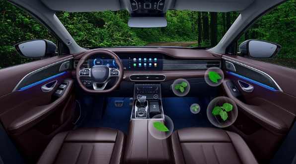 前文已经提到VOC会影响健康,所以如何抑制这些“隐形杀手”至关重要。首先要知道VOC的来源与选材有着直接关系,座舱的门饰板、地毯、顶棚、汽车线束、座椅材质等都是有害气体的来源地,因此捷途X90子龙甄选了118内饰环保材料,覆盖座舱关键区域,从源头抑制了VOC的挥发。