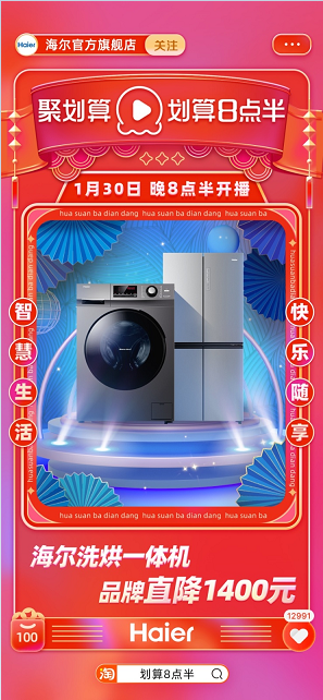 当晚的核心爆款产品囊括家电、家具、奶粉、日化等多样生活品类,如海尔470L超薄冰箱、海尔10公斤洗烘一体机、金领冠珍护3段奶粉、苏泊尔电饭煲、苏泊尔空气炸锅等,不但满足了消费者生活的方方面面,还都是由品牌官方直播间提供的商品,确保了聚划算《划算8点半》直播产品都有品牌旗舰正品护航,消费者可以放心选购。