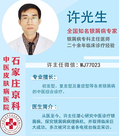 以上已经详细介绍,相信大家已经有了详细的了解。为了避免受到牛皮癣的困扰,患者一定要多加注意,正确进行牛皮癣的治疗,更多预防护理类知识请加许主任,了解更多。