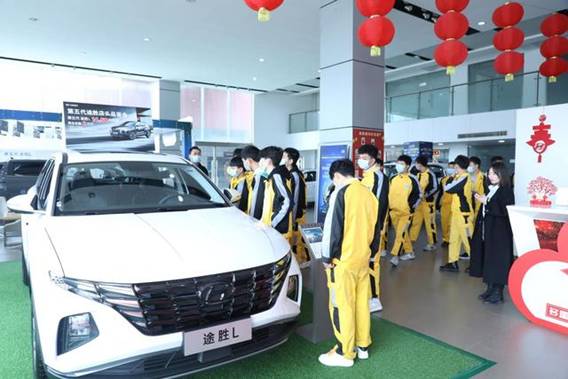 学子在工作人员的带领下,兴致勃勃地参观了整个北京现代4S店。学子们也是兴趣盎然,自感受益匪浅,不仅增进了对实际工作岗位的理解,也明确了今后努力的方向,更加坚定了扎根汽车后服务行业,把自己塑造成职业化汽车技能人才的信心。