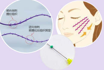 线雕通过埋线的方法将蛋白线埋入皮下,织成一张人工韧带网收紧筋膜,并刺激皮下组织大量生成胶原蛋白,从而达到提升皮肤松弛下垂,甚至是紧致瘦脸的作用!