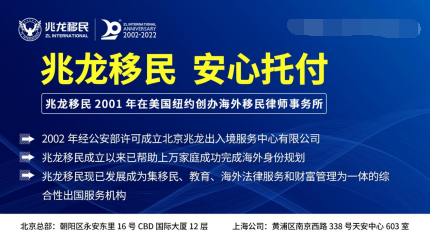 兆龙移民是国内首批经公安部、教育部颁发认证的“双资质”机构,旗下包括移民、留学、海外资本三大业务板块,以及拥有美国纽约海外律所的实体机构,至今为上万家庭提供完善的移民、海外置业、教育、安居及投资等涉外法律和商业服务。