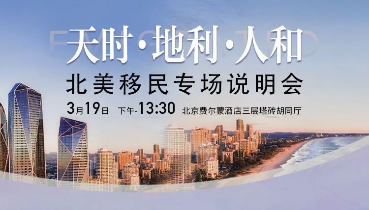兆龙移民《北美移民专场说明会》将于3月19日重磅开讲!全国免费预约热线:400-8080-999。