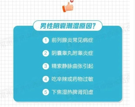 另外,慢性前列腺炎、精索静脉曲张、阴囊湿疹等疾病有可能出现阴囊潮湿。