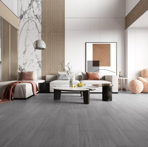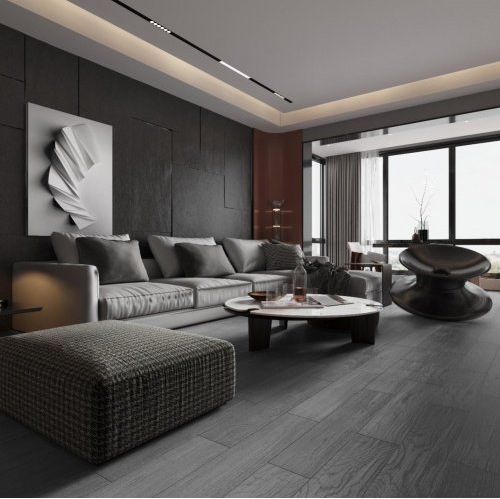 主打以黑白灰为主色调,采用具有设计感的家具,打造出时尚美观的室内空间。搭配灰白色的久盛地板,在喧嚣城市中,感受一番别有风味的寂静之美。