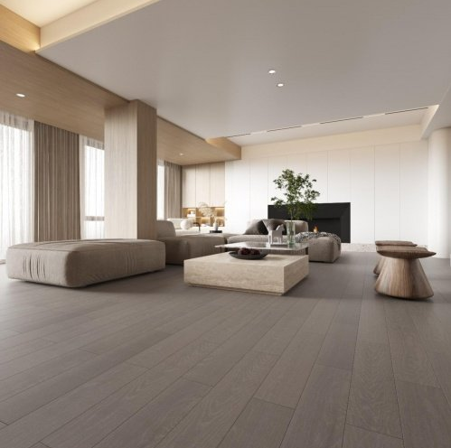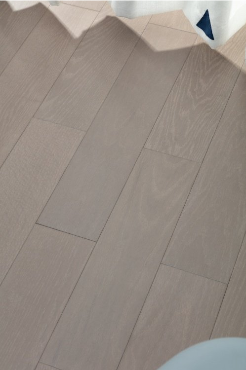 【随心系列】表面有经过了我们特殊工艺处理过的拉丝工艺纹理效果,因此用手感觉它的表面是平面的,几乎没有拉丝痕迹,但看起来又是有着漂亮的拉丝感的。这极大的增强了地板铺装的视觉效果及体验,使其更便于您的风格搭配。