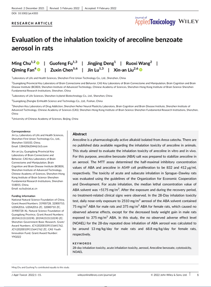 导语:2月23日,深圳市水槟榔生物科技有限公司、深圳市合元科技有限公司与中国科学院深圳先进技术研究院联合署名在SCI期刊《应用毒理学》(Journal of Applied Toxicology)发表了题为“evaluation of the inhalation toxicity of arecoline benzoate aerosol in rats”的研究论文。