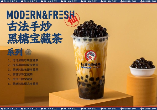 是被动陷入“内卷”,还是大胆创新?仙亦烧仙草奶茶把握“盲盒奶茶”的消费潮流,以酸奶烧仙草为主打,一方面丰富产品种类和口味,开发酸奶烧仙草系列、古法手炒黑糖宝藏系列、酸奶紫米露系列、鲜果茶系列、鲜果优多系列、水果芝士系列、拉面奶茶等八大系列,六十多种产品,另一方面为产品赋予盲盒元素,消费者只需购买9.9元以上的奶茶就能在店内免费抽盲盒,盲盒商品为潮流发饰、首饰、配饰、美妆、玩具等,消费者“买一得二”,既享受美味,又获得惊喜与实惠。