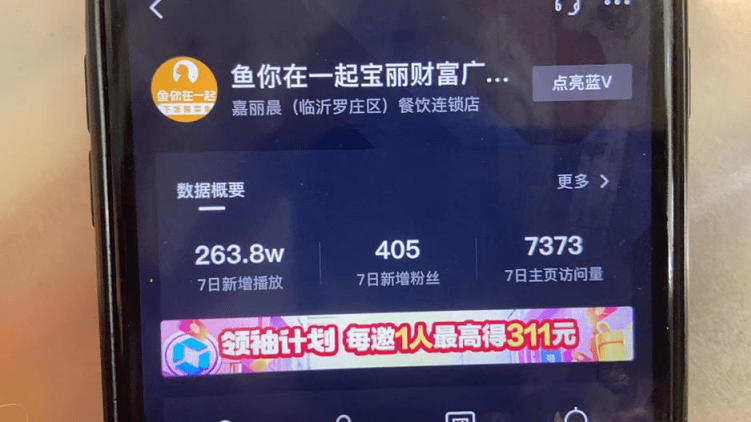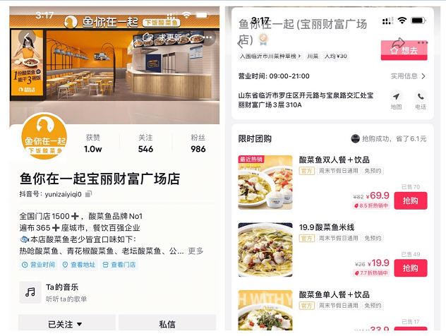 正如姚丽美所期待的,加入鱼你在一起抖音矩阵后,门店可谓发生了翻天覆地的变化,姚丽美激动的和记者分享着成果:上新抖音团购一个月,平台团券高达100余单;附近同城推送成为免费广告位,通过“加关注到店消费送饮料”的活动,活动期间日流水成功突破10000+。