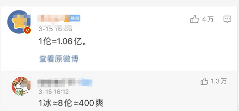 1伦=1.06亿=0.08薇,1冰=8伦=400爽。